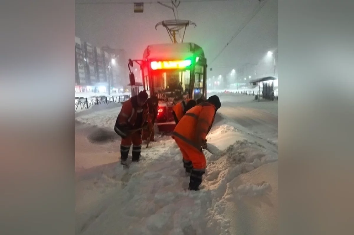 Общественный транспорт тоже сдавал позиции. Трамвай № 8 встал — пути требовали расчистки. Несколько автобусных маршрутов изменили схемы движения. А на остановке «Новониколаевский» пассажиры дружно выталкивали застрявший автобус № 36а. Такие кадры сейчас не редкость: прохожие объединяются в импровизированные спасательные отряды, чтобы вызволить из плена чью-то легковушку или маршрутку.