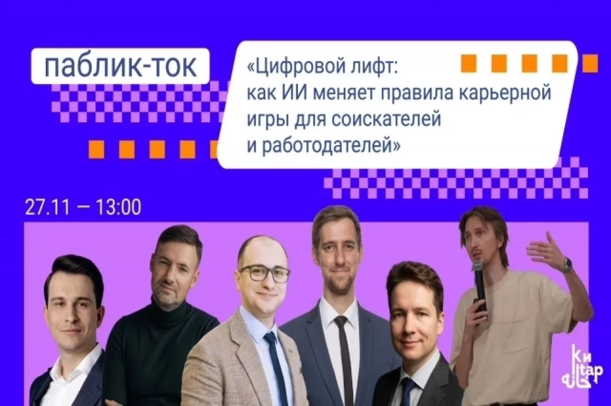 С 13:00 до 14.30 а конференц-зале пройдет паблик-ток «Цифровой лифт: как ИИ меняет правила карьерной игры для соискателей и работодателей». В нем примут участие замминистра цифрового развития госуправления, информационных технологий и связи РТ Булат Габдрахманов, директор института информационных технологий и интеллектуальных систем, КФУ Михаил Абрамский, преподаватель магистратуры Университета «Иннополис» Василь Закиев, директор Лицея Иннополис Арман Костанян.