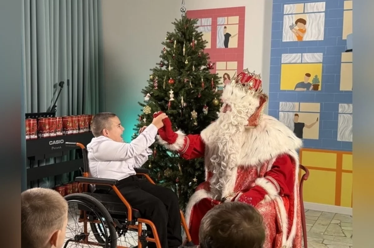 Первым делом Зимний Волшебник поспешил в Инклюзивный центр «Вместе», который работает всего полгода. Сегодня здесь занимаются 138 детей, из них – 103 с ограниченными возможностями здоровья. В центре ребята рисуют, занимаются театральным мастерством, в том числе техникой речи, вокалом и многим другим.