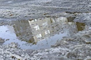 Талый снег затопил улицу в Новых Сокурах и ограничил жителям проезд